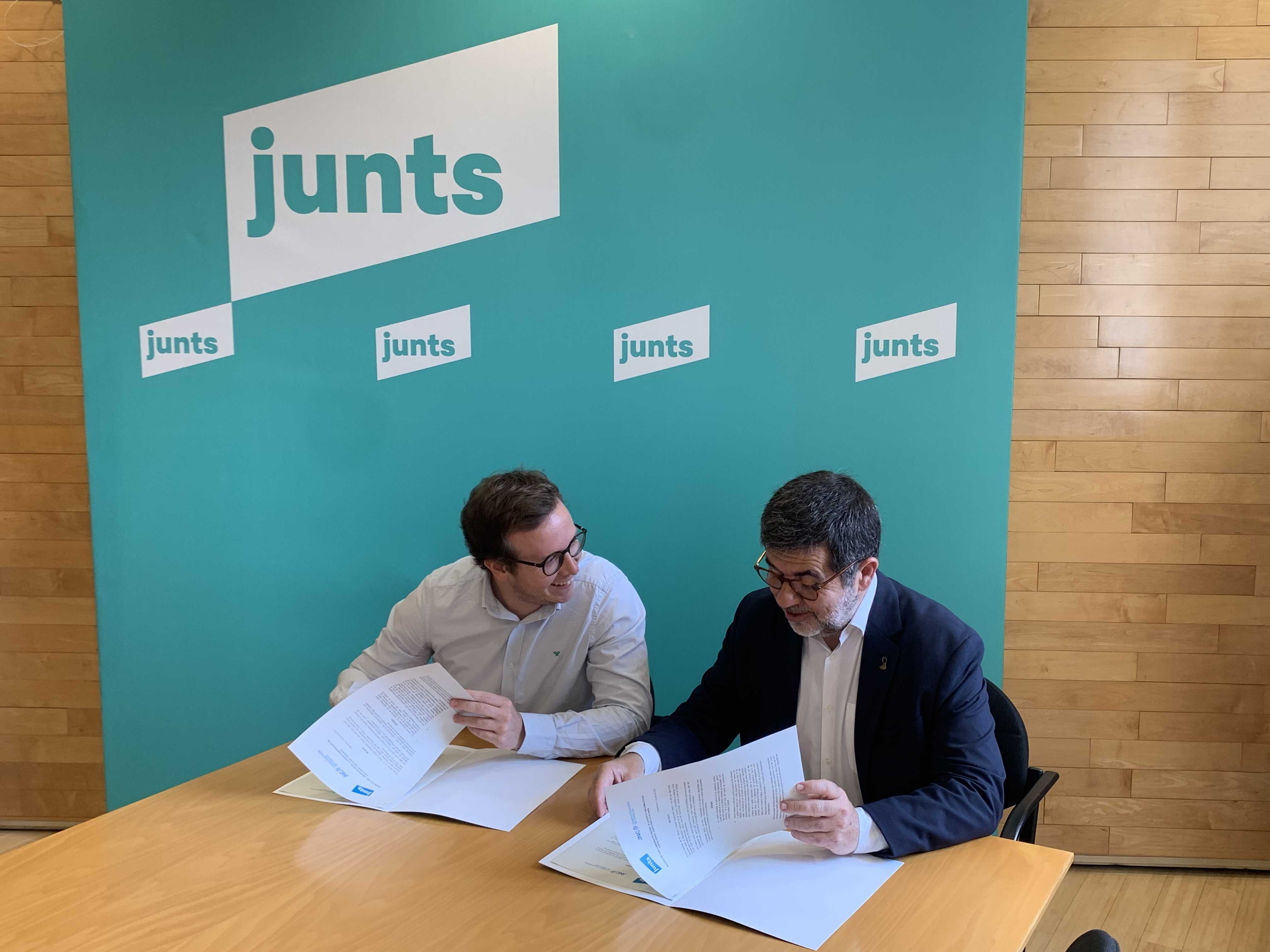 La Joventut Nacionalista de Catalunya ha firmat un acord de col·laboració amb Junts per Catalunya. Els secretaris generals de les dues formacions independentistes, Jordi Sànchez i Álvaro Clapés-Saganyoles, han signat l’acord aquest divendres, 3 de juny. En el text signat, Junts per Catalunya “reconeix la JNC com a organització referent en l’àmbit de joventut i debats sectorials joves, sent la voluntat d’ambdues parts la de treballar de manera estable i conjunta pel desenvolupament de polítiques de l’àmbit d’ara endavant.” Així mateix, l’acord estableix les bases de participació de la JNC als òrgans de decisió de Junts, comptant amb representants de la JNC al Congrés Nacional, al Consell Nacional, així com a l’Executiva Nacional de Junts.